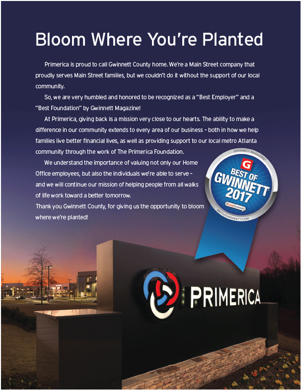 Consistently Awarded Best Foundation and Best Employer by Readers of Gwinnett Magazine:The Primerica Foundation has been named a Best Foundation in Gwinnett Magazine’s annual Best of Gwinnett community poll for three in a row (2017-2019). Primerica has been named in the same publication as a Best Employer from 2014-2019.