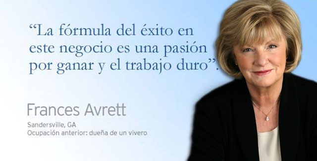 "Mi increíble equipo tiene oficinas en todos los Estados Unidos y Canadá. La fórmula del éxito en este negocio es una pasión por ganar y el trabajo duro. Estoy orgullosa del logro y éxito de nuestro equipo pero estoy más orgullosa del efecto positivo que tuvo en mi familia y la calidad de vida que puedo brindarles”.